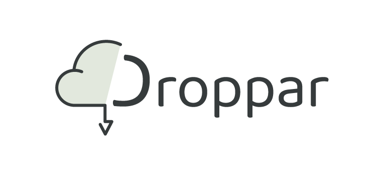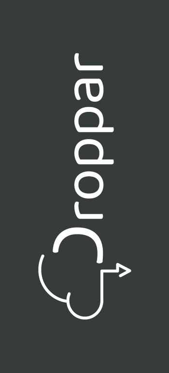 Het logo van Droppar bestaat in verschillende versies. De primaire versie is volledig in de kleur Onyx. De secundaire versies maken gebruik van 2 accentkleuren. Columbia Blue en Alabaster.
